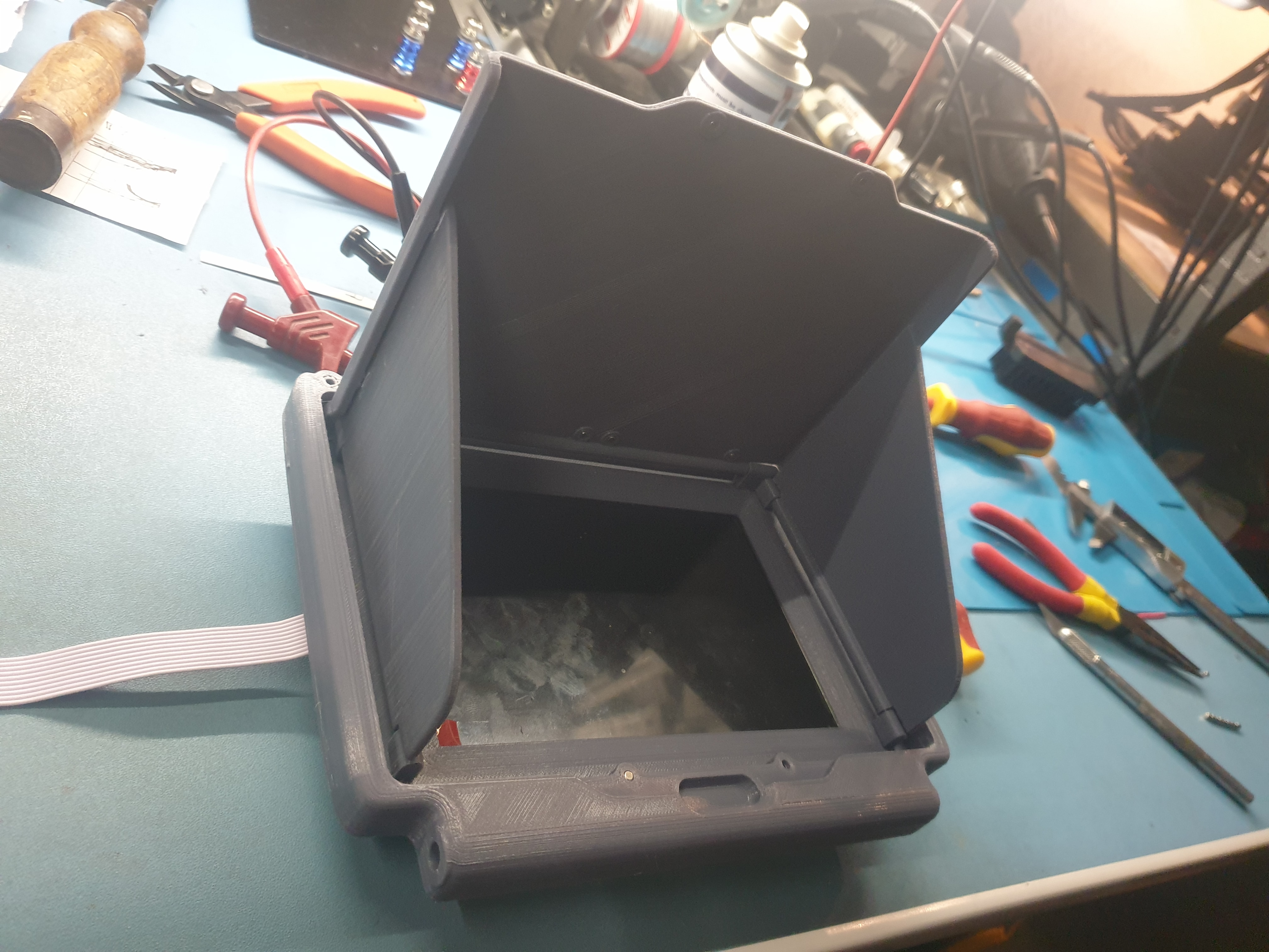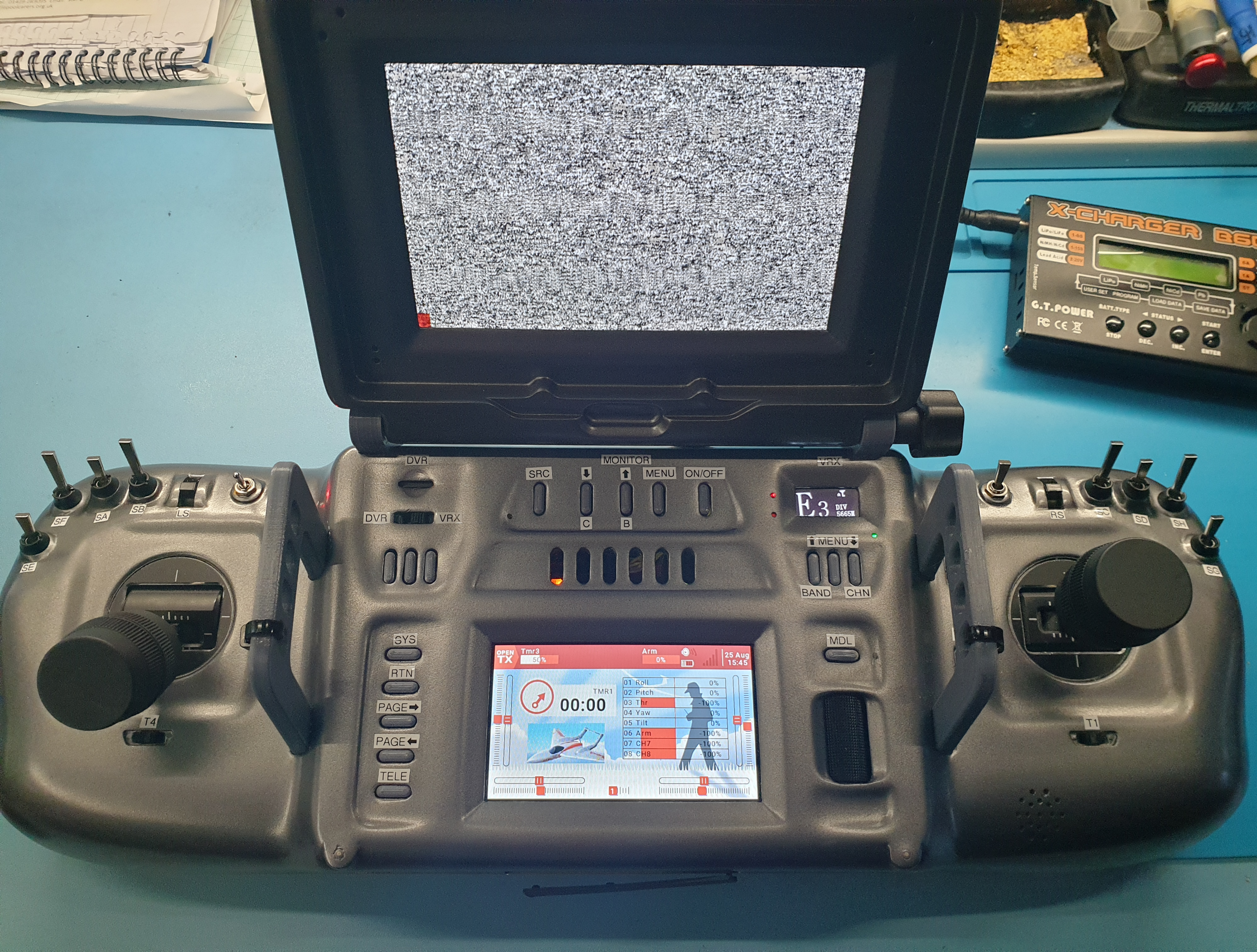The ground station has now reached a working prototype stage, although the version shown here is not fully assembled. The upper display is there purely for analog FPV viewing and recording. There are still things to improve, and things I would have done differently now that I’ve tested the unit in the field.